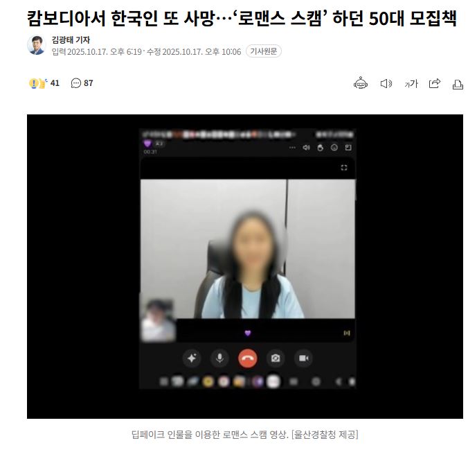 海外を拠点に活動していたロマンス詐欺事件で、インターポールに国際手配されていた50代の韓国人男性が、逃亡先のカンボジアで命を落としていたことが明らかになり、韓国ネットに大きな波紋を広げています。